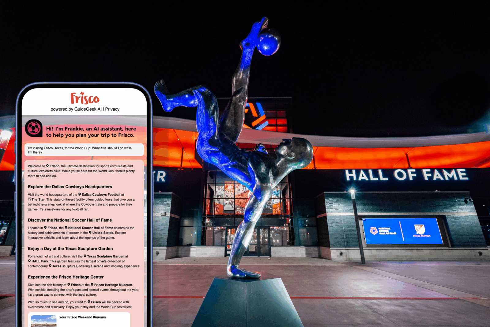 “Frisco is gearing up to welcome visitors from around the world, and Frankie helps us meet that moment with innovation and hospitality,” says Marla Roe, Executive Director of Visit Frisco. “This tool gives travelers instant access to the information they need while giving our team deeper insights into visitor interests, behaviors and the types of experiences they’re seeking. It’s a great assist for our guests and a scored goal for our partners.”