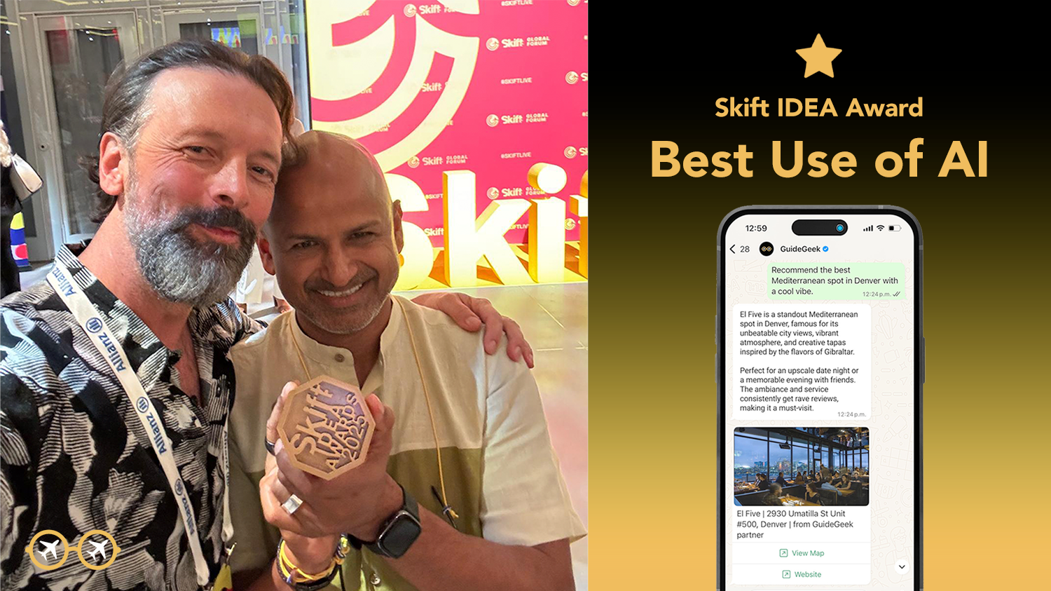 Leading travel business publication Skift named GuideGeek "Best Use of AI" in its 2025 IDEA Awards.